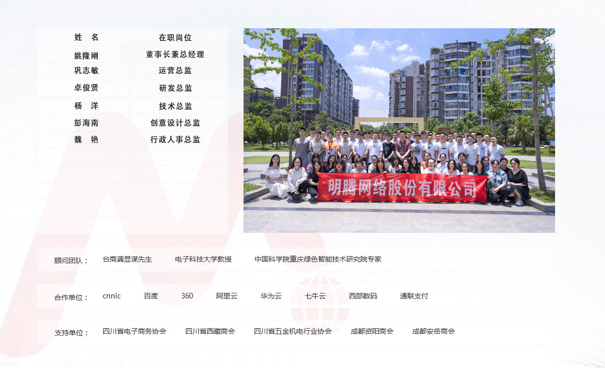 管理團隊:由從事企業官方網站建設10年以上的專家組成,對企業官方網站、電子商務平臺網站、行業平臺有豐富建站經驗及運營經驗。其中包括技術研發團隊、程序團隊、美工團隊、客服團隊和商務團隊。