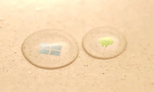 其中一段影片的主題是“All-in-One is No Longer In One”,片中可以看到許多小水滴聚合成一個大水滴之后,最后又分裂成兩個分別擁有 Android 機器人以及 Windows 8 標志的水滴,暗示華碩的新產品將會同時兼具這兩個不同的操作系統。