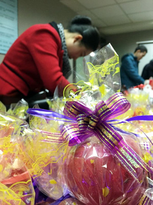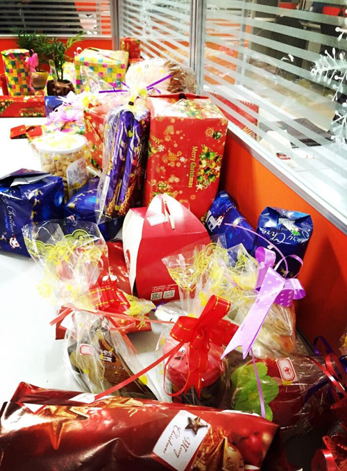 雖然圣誕節不是中國的傳統節日,但是這個節日卻很受大家的歡迎,因為快樂無國界。24日下午,同事們早早的就把公司打扮一番,頓時公司一改往日的嚴肅莊重,變得活潑可愛了。同時公司送給大家的禮物也分裝好了,還有大家共同選購的神秘交換禮物一一就位。