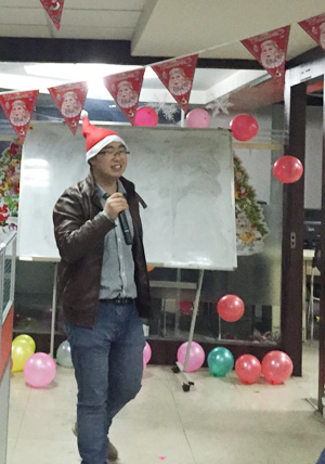 期間更有“圣誕老人”空降現場,給大伙兒發平安果。想必圣誕老人也愛湊熱鬧的呀。還有我們技術總監的吉它彈唱和同事的單曲獨唱表演。