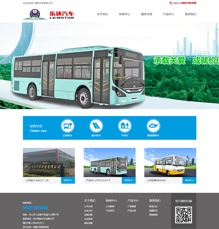 四川國(guó)宏汽車(chē)有限公司(原名:樂(lè)山客車(chē)廠),位于樂(lè)山市工業(yè)集中區(qū),是一家專(zhuān)門(mén)致力于大、中、輕型傳統(tǒng)客車(chē)和新能源客車(chē)及新能源物流運(yùn)輸車(chē)研發(fā)、生產(chǎn)、銷(xiāo)售的大型生產(chǎn)企業(yè)。公司創(chuàng)建于1958年,直屬于四川省交通廳管轄的客車(chē)生產(chǎn)企業(yè),公司生產(chǎn)的“樂(lè)達(dá)牌”客車(chē)主要包括:城際客車(chē)、城市客車(chē)、城鄉(xiāng)客車(chē)、鄉(xiāng)村客車(chē),重點(diǎn)打造城際、城市、城鄉(xiāng)、鎮(zhèn)村四級(jí)客運(yùn)服務(wù)網(wǎng)絡(luò)和以城帶鄉(xiāng)、統(tǒng)籌協(xié)調(diào)、相互融合的的城鄉(xiāng)客車(chē)運(yùn)輸服務(wù)系統(tǒng),緊抓國(guó)家提出的新型城鎮(zhèn)化發(fā)展帶來(lái)的機(jī)遇,著力打造完善的汽車(chē)產(chǎn)品體系。公司注冊(cè)資金2億元,占地面積57000㎡。