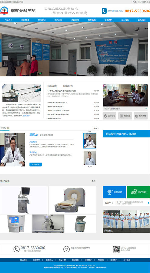 我院業務技術人員以原南部縣人民醫院、第二人民醫院骨科專家為主體,技術上在本區域內居于前列,能開展國家三級二等醫院所規定的專科手術項目。平均每年收治門診病人27000人,住院病人2500人,開展手術1700臺次。醫院大型設備有:數字X光機(DR)、飛利浦16排螺旋CT、全自動生化儀、彩超、移動式X光機(C型臂),另外有普通牽引床、3維牽引床、中藥熏蒸床、上下肢功能鍛煉儀、遠紅外線烤燈、骨折治療儀、中頻治療儀等康復理療設備。能滿足各種檢查治療的需要。