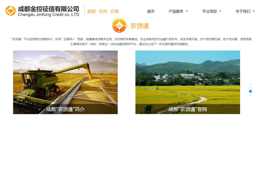 金控征信被確定為市農委牽頭的“農貸通”平臺系統建設運營單位,并提供征信產品、征信服務,致力打造成都市農村金融綜合服務改革的標桿和示范載體。