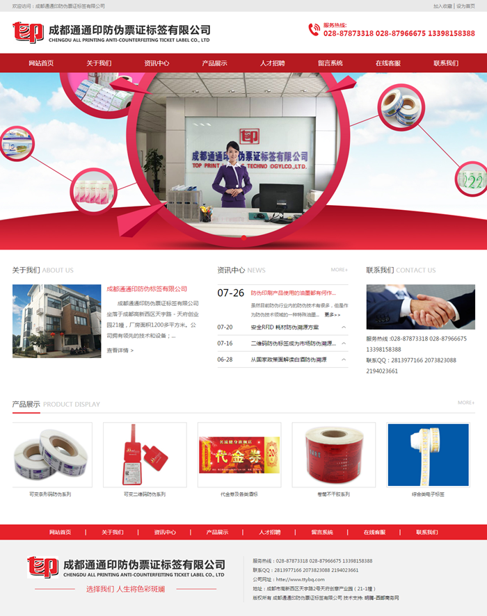 公司主要產品:卷筒自動貼不干膠標簽、可變數據防偽標簽、紋理防偽商標、RFID射頻標簽、個性化防偽標簽、二維碼標簽、監管碼標簽、電子標簽、掲開留底標簽、 鐳射貼紙、籌碼貼膜、卡通創可貼膜、 PVC膜類產品等特種印刷及內外貿促銷禮品等業務。