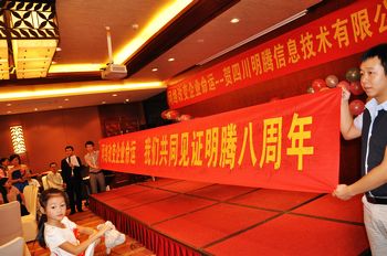 秋風(fēng)送爽,丹桂飄香。在這收獲的季節(jié),我們迎來了明騰公司八周年的生日。我們滿懷喜悅的心情在這里歡聚,回首八年發(fā)展歷程,風(fēng)雨坎坷我們一起走過,這是我們作為明騰人的驕傲和自豪。公司創(chuàng)辦八年以來,在管理層團(tuán)結(jié)一心,員工們努力拼搏的前提下,發(fā)揚(yáng)“團(tuán)結(jié)、務(wù)實(shí)、拼搏、創(chuàng)新”的企業(yè)精神,以網(wǎng)絡(luò)改變企業(yè)命運(yùn)為決心,使公司得到了蓬勃發(fā)展,讓員工生活水平大幅度提高,各項(xiàng)工作取得了巨大成績(jī),這成績(jī)凝聚著全體員工的心血和汗水,在此,我代表公司,向大家表示最真誠(chéng)的感謝,謝謝大家。