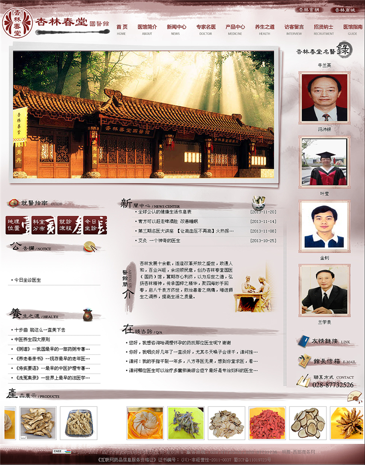 | 功能模塊 | 醫(yī)館簡介/新聞中心/專家名醫(yī)/產(chǎn)品中心/養(yǎng)生之道/訪客留言/招賢納士/醫(yī)館指南 |