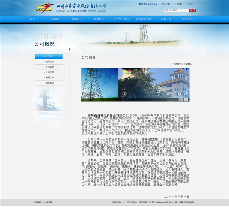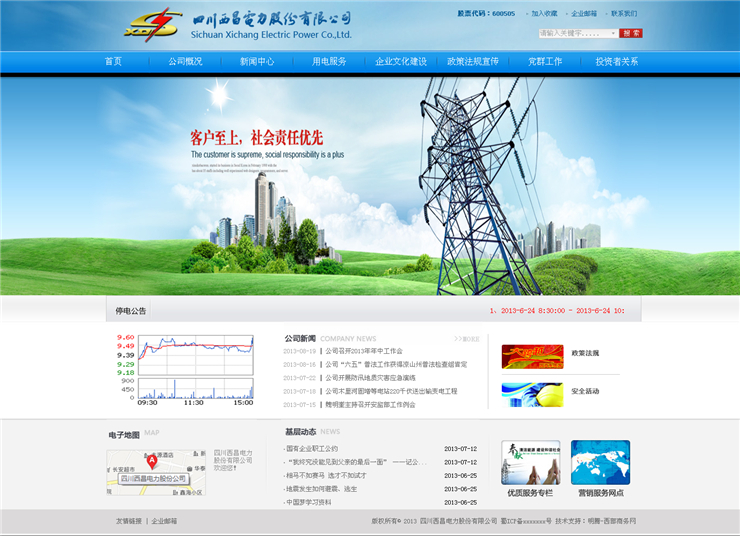 | 功能模塊 | 公司概況/新聞中心/用電服務(wù)/企業(yè)文化建設(shè)/政策法規(guī)宣傳/黨群工作/投資者關(guān)系 |