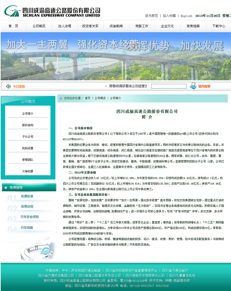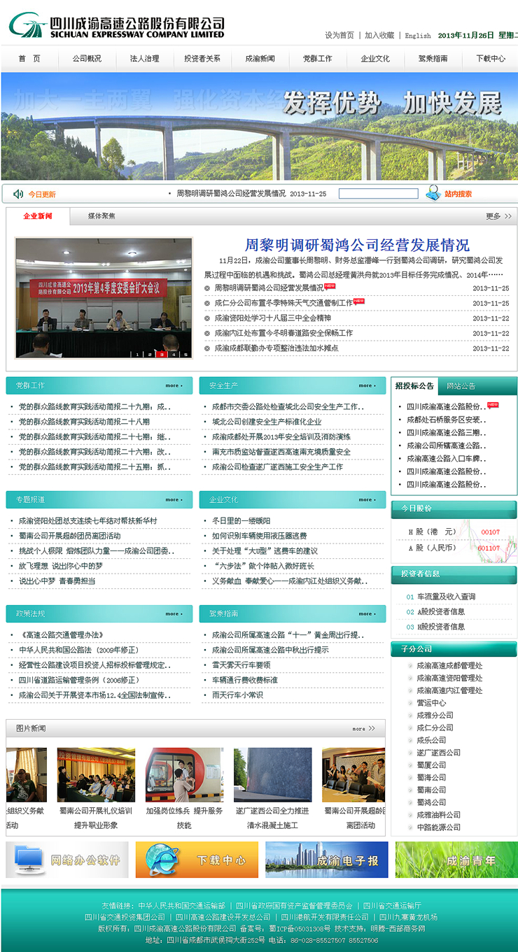 功能模塊 公司概況/法人治理/投資者關系/成渝新聞/黨群工作/企業文化/駕乘指南/下載中心