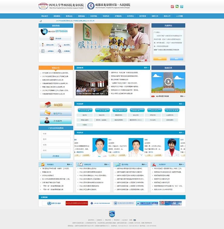 | 功能模塊 | 網(wǎng)站首頁/ 醫(yī)院概覽/ 新聞動態(tài)/ 就醫(yī)指南/ 科室導航/ 專家風采/ 護理園地 /科學研究/ 醫(yī)學教育 /黨群工作/ 院務公開 /人才招聘 |