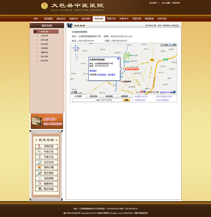 | 功能模塊 | 首頁/醫院概況 / 醫院動態/黨建專欄/ 醫生團隊/就醫指南/醫院文化 /科教學術/尋醫問藥/典型醫案/合作交流 |
