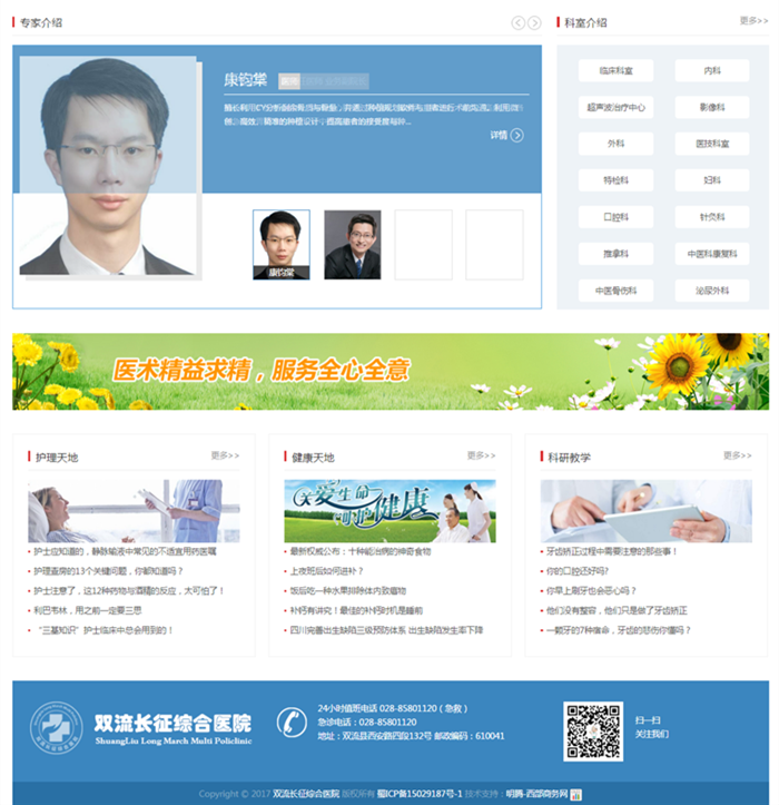 客戶概況:雙流長征醫院是經國家衛生主管部門批準成立的一家集醫療、保健、康復為一體的一級綜合性醫院,為你提供牙科、婦科、泌尿科、皮膚科、內外科、骨傷科、中醫科等診療項目, 醫院以“一切以病人為中心”為宗旨,誠信辦醫、依法治院、規范執業、科學管理。