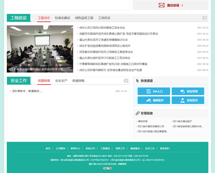 | 功能模塊 | 首頁|公司概況|新聞中心|信息公告|黨群工作|廉政建設|工程建設|安全工作|聯系我們 |